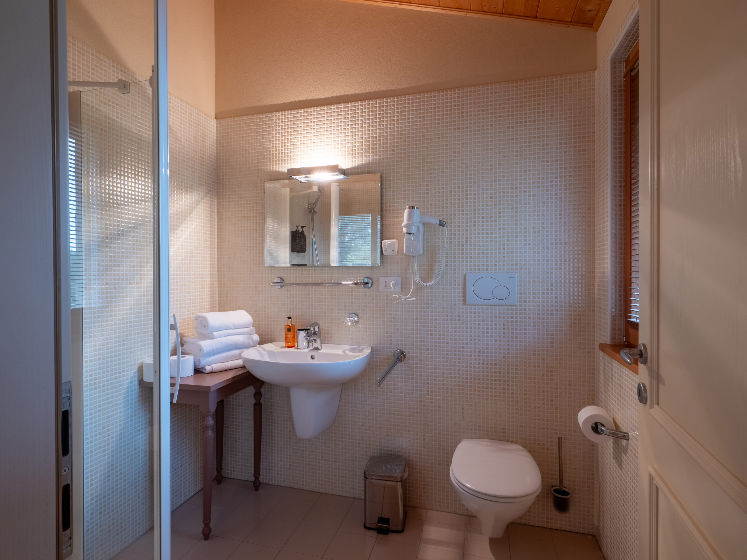 A breathtaking view of Poppi’s castle evokes the charm of a bygone era. The scent of the wood, the modern fireplace, and the craftsmanship of Rubner Group combine to make this villa as warm and comfortable as your own home. Villa Chimera is both environmentally friendly and sustainable.