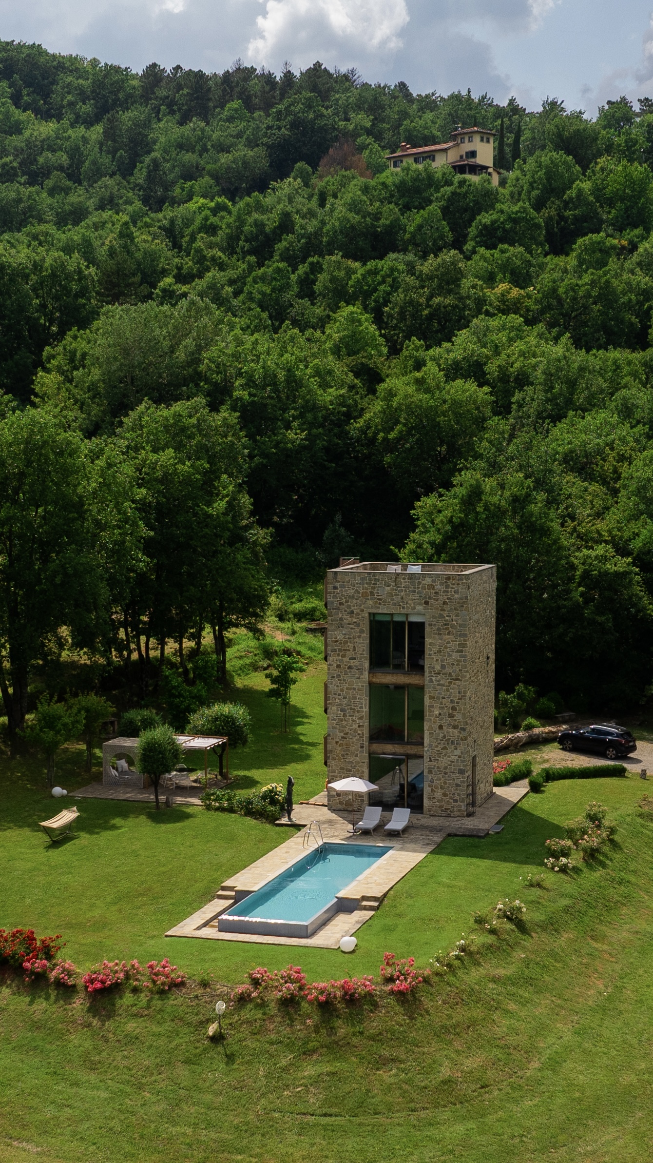 An elegant and exclusive estate, Residenza Fraschino is surrounded by the privacy of the woods, offering a breathtaking view of Poppi’s castle to be enjoyed from the infinity pool.